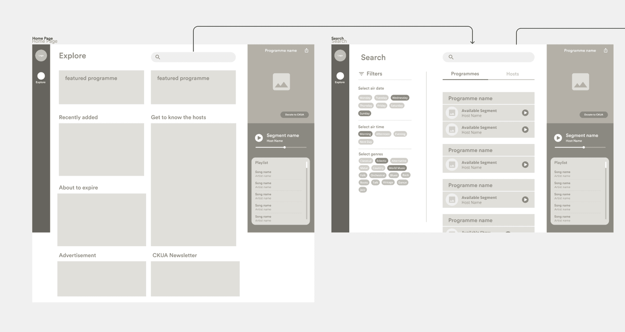 We delivered a web app that addressed CKUA’s needs and received glowing user reviews post-launch. By prioritizing the most important features, we navigated scope cuts, such as removing the dedicated host and segment pages. Instead, users could access these details via the search tab, linking to the CKUA website. This approach allowed us to focus on refining key features like the player.
